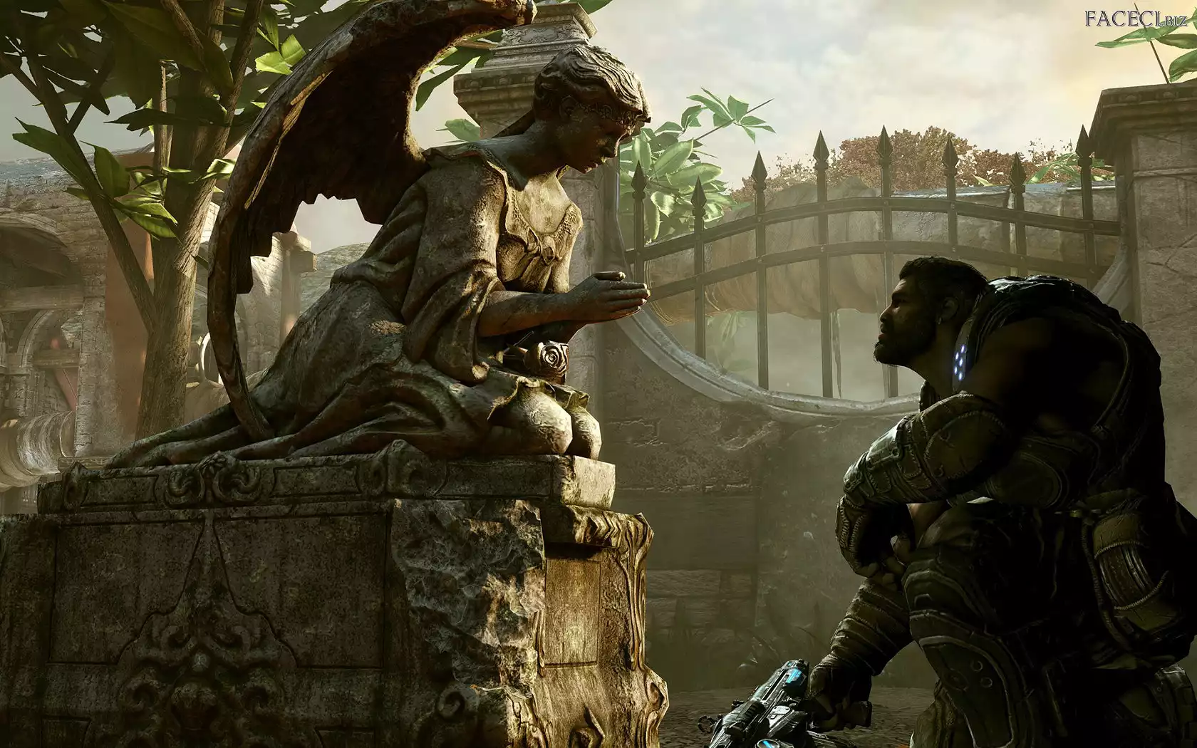 Anioł, Ogrodzenie, Posąg, Wojownik - faceci.biz