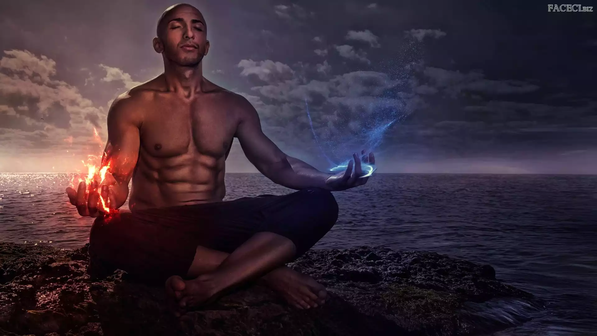 Ogień, Woda, Medytacja, Mężczyzna, Morze - faceci.biz