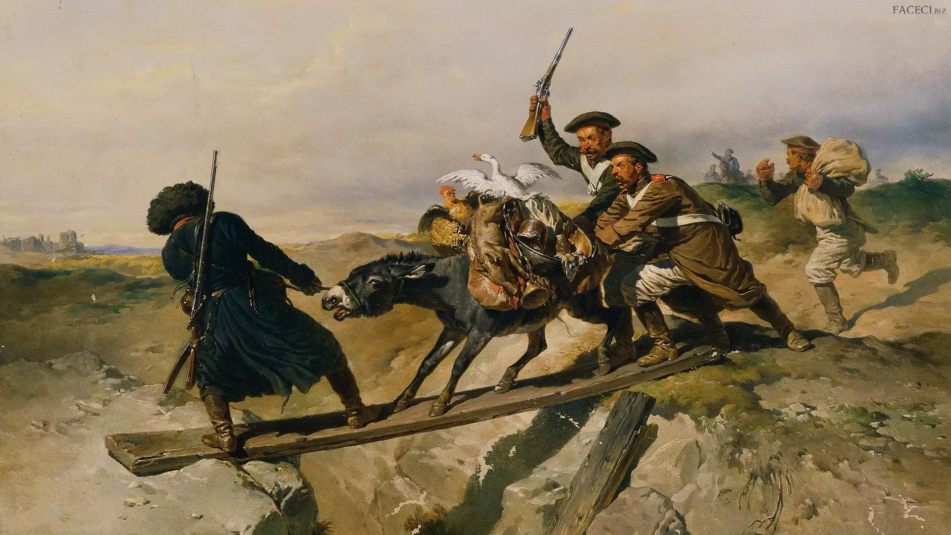 Wojna, Josef Anton Rhinestone Gschwandtner, Malarstwo, Zwierzęta, Ucieczka, Obraz, Żołnierze - faceci.biz